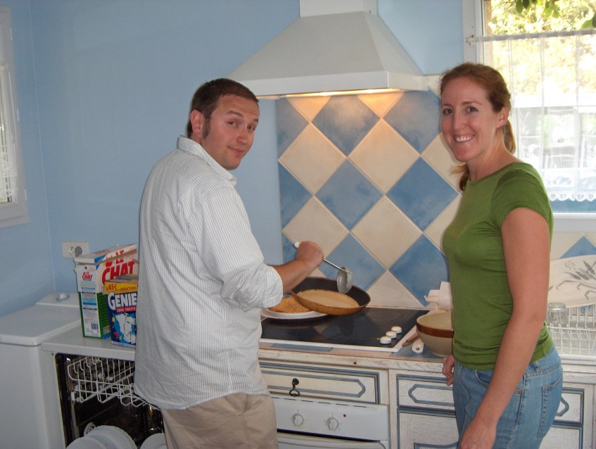 157 Making Crepes Published April 12, 2013 at 2592 × 1952 in Bretagne, Je t’aime My hubby and me, making crepes
